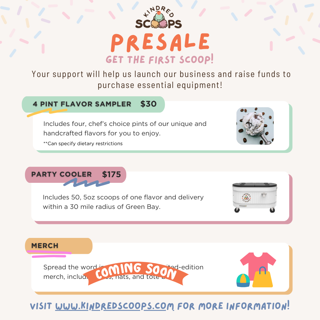 Pint presales will need to be picked up in Green Bay, WI. You will be contacted when products are ready and will have two weeks to claim your order.